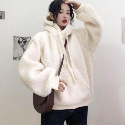 [엄지척]여자 티셔츠 양털 후드 뽀글이 루즈핏 겨울 후드티_19646115_667501