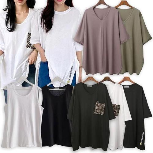 [셀러허브_여성트랜드패션]여름 옷 빅사이즈여성의류 반팔 민소매 루즈핏 롱 티셔츠 중년 엄마 미시 오버..