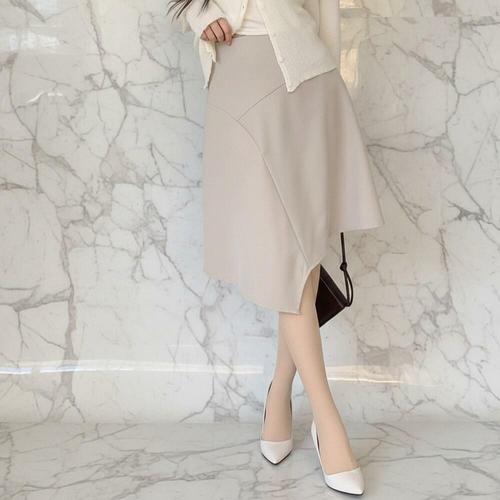 [미라클세븐]여성 언발란스 절개 미디 스커트 포인트 디자인