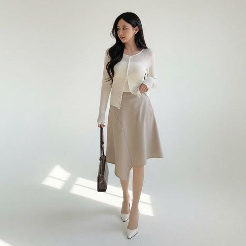 [미라클세븐]여성 언발란스 절개 미디 스커트