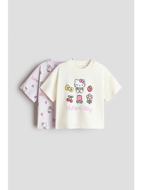 [에이치엔엠] 프린트 코튼 티셔츠 2피스 세트 라이트 퍼플/헬로키티 1315786005