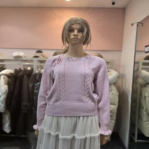 [에고이스트][에고이스트] 꽈배기 러플 리본 포인트 니트 ES1JK-100 (P003761003)