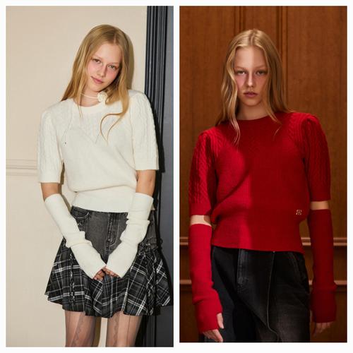 [에고이스트]케이블 반팔 니트&워머 SET ER4OKH51_DG