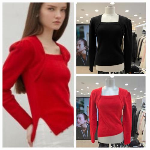 [에고이스트]스퀘어넥 자수 트임 니트탑 (ER3EK708)