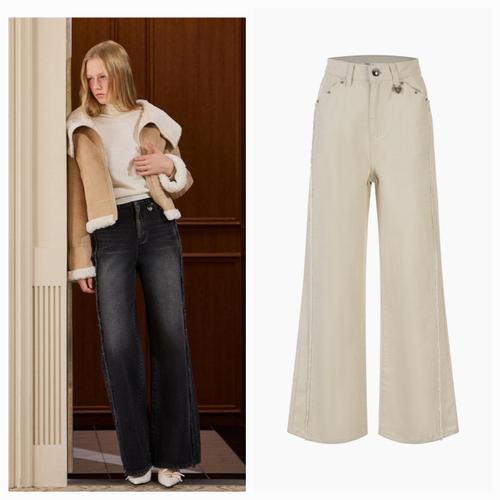 [롯데백화점]에고이스트 포켓 절개 포인트 기모 슬림 와이드 데님 팬츠 EQ4DP162