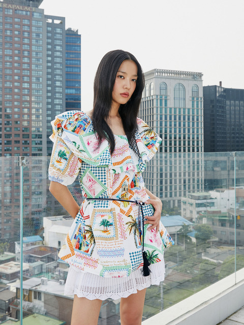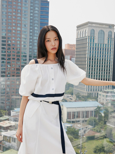 [에고이스트] [CAPSULE LINE] 배색끈 오플숄더 블라우스 ER3WB764