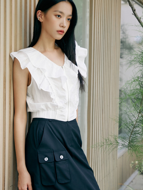 [에고이스트] 프릴 슬리브리스 앞지퍼 블라우스