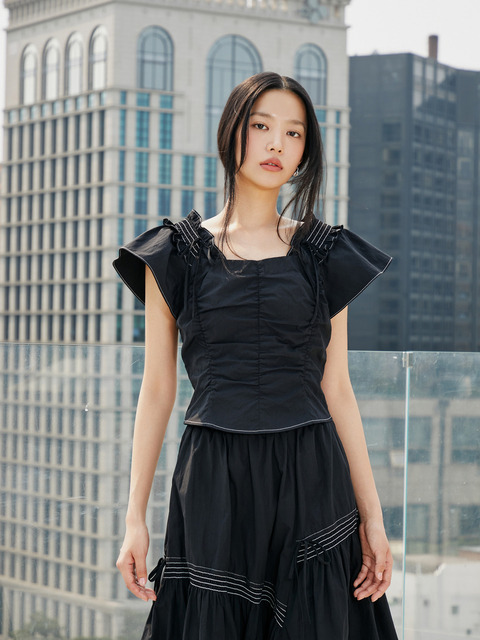 [에고이스트]스퀘어넥 볼륨소매 페미닌 셔링 블라우스 (EQ2WB461)