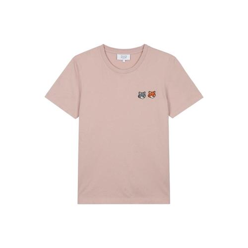 [메종 키츠네] 메종키츠네 여성 더블 폭스 헤드 레귤러 티셔츠 핑크 클레이 OW011CFKJ7026-0172
