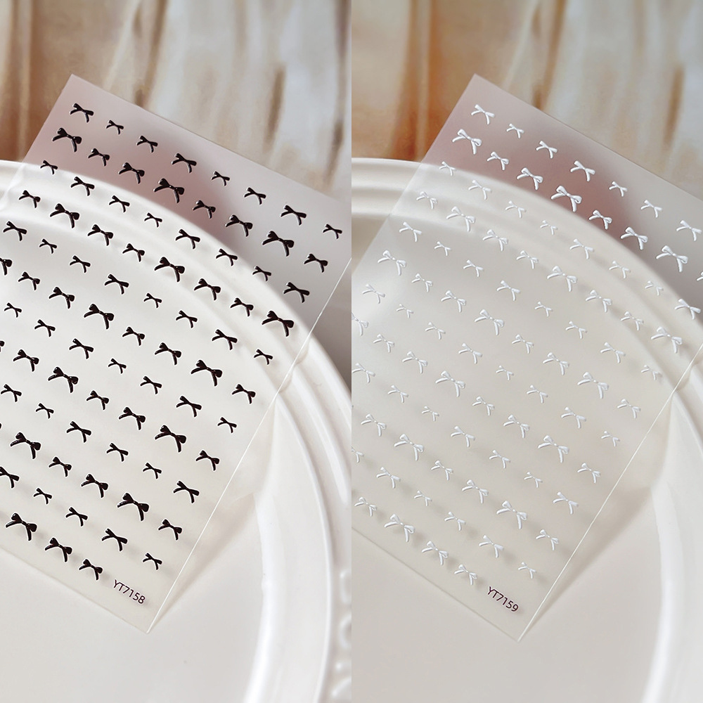 TEMU 2개입 엠보싱 소형 리본 네일 스티커, 세련되고 미니멀한 클래식 우아한 스타일 인기 스티커 액세서리