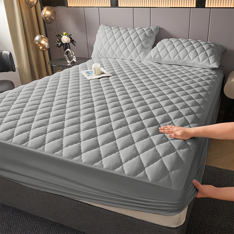 TEMU 1개 모던 그레이 방수 피트 침대 시트 - 부드러운 퀼트 매트리스 커버, 스타인 방지 침대 보호대, 트윈/풀/퀸/킹 사이즈용 연회색 침대 스프레드, 세탁기 사용 가능 (이불 미포함)|베개커버|매트리스커버