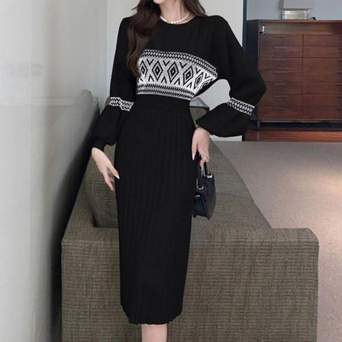 [엄지척]에스닉 니트 볼륨소매 플리츠 스커트 롱기장_19951942_667501