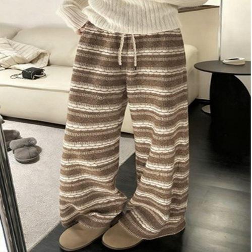 2컬러 에스닉무드 스트라이프 겨울 퍼 니트 롱팬츠 WFLRHRI