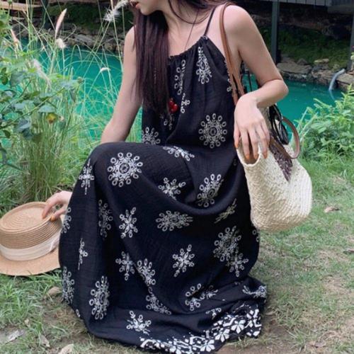 [다잇템]여자 썸머 바캉스룩 에스닉 플레어 롱원피스