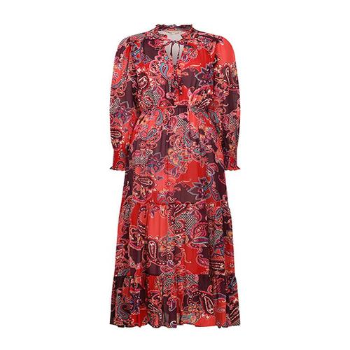 [썬쿠][썬쿠] 에스닉 패턴 프릴 넥리본 롱 원피스(RE71B9OPS05V)
