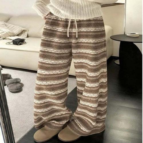 [오너클랜]인기상품 2컬러 에스닉무드 스트라이프 겨울 퍼 니트 롱팬츠 [WFLRHRI_260124]