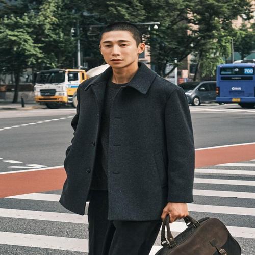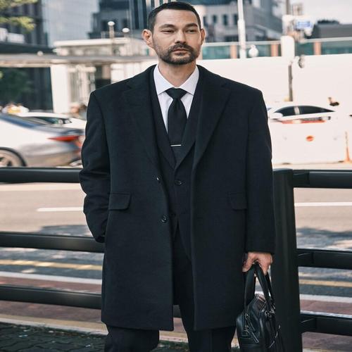 [STCO]등판 덕다운 울 캐시 체스터 코트 차콜 그레이