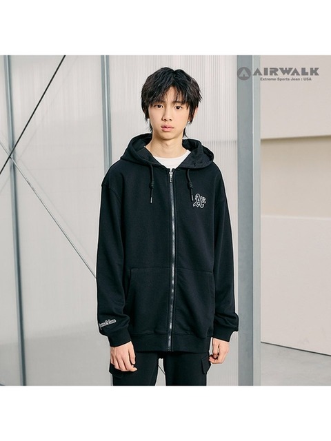 [에어워크주니어] 주니어 로고 자수 오버핏 후드집업