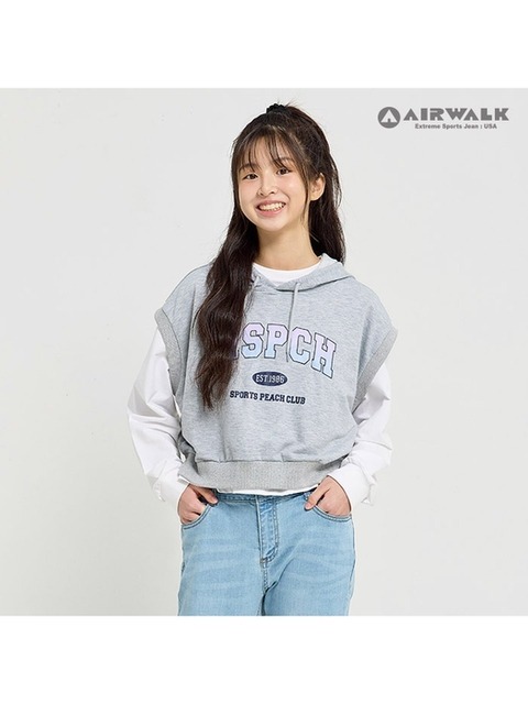 [에어워크주니어] 여아 주니어 레이어드 크롭 후드티셔츠