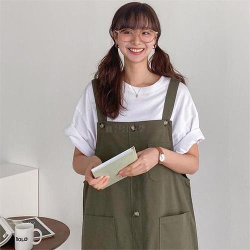 [다잇템][다잇템] 여자 단추 가죽원피스 에이라인 브이 컷아웃 서스펜더 롱원피스_23705831_588872