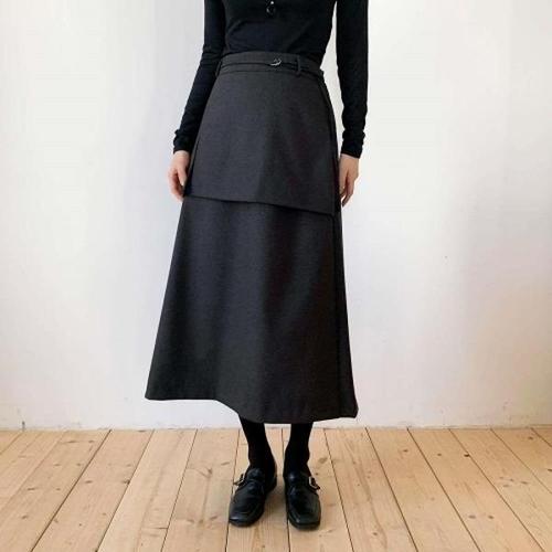 [다잇템][다잇템] 여자 롱 FW 레이어드 스커트 헤링본 혁대 에이라인 스커트_23961260_588872