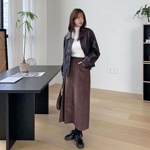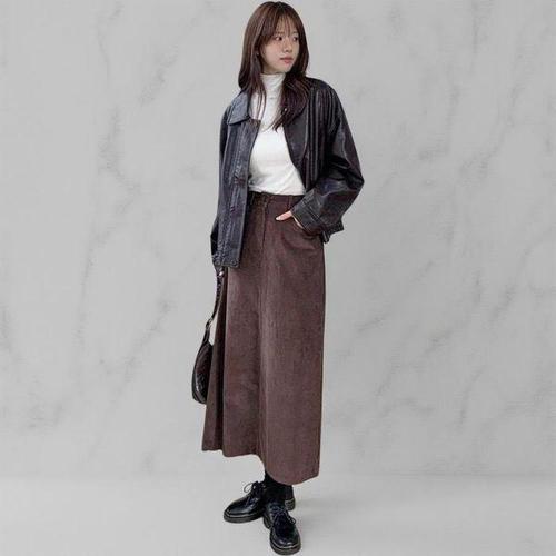 [다잇템]여성 롱 원컬러 골덴 두툼한 에이라인 치마