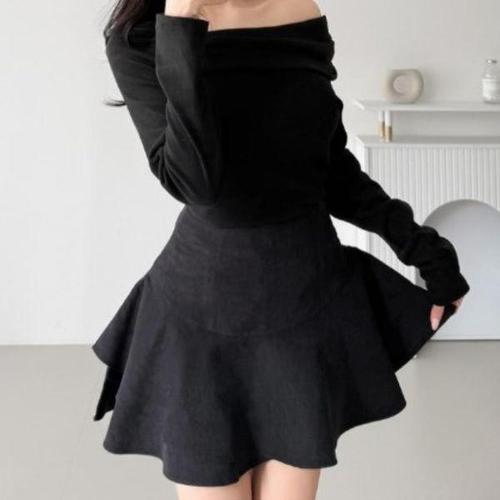 [다잇템]여성 미니멀리즘 에이라인 반소매 치마 세트
