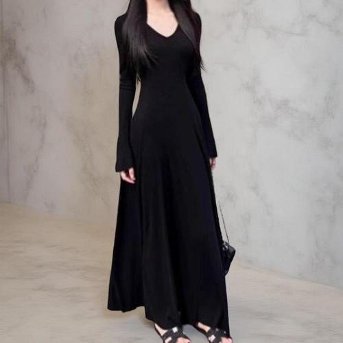 [다잇템]여성 롱 에이라인 기본색 일상용 슬림 드레스