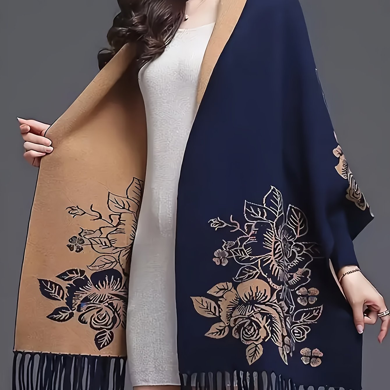 TEMU 시크한 보호 숄 가디건 - 따뜻하고 스타일리시한 가을/겨울용 | 폴리에스터, 자수 디자인, 겨울 및 가을