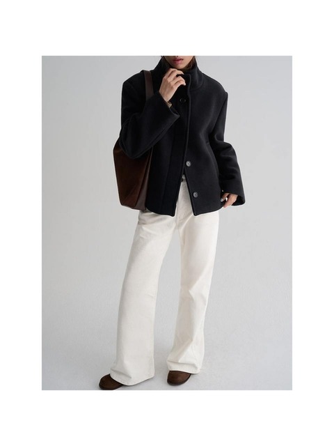 9881 에잇세컨즈 블랙 울혼방 오버사이즈빅카라하프코트 [80]