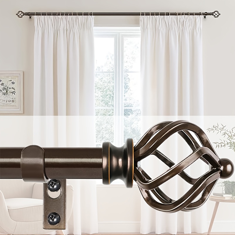 TEMU 18인치에서 120인치까지 조절 가능한 브라운 커튼봉 1세트. 다양한 창문 유형에 적합하며, 꼬임 케이지 마감이 있는 스플라이싱 드레이퍼리 봉 특징. 욕실, 주방 및 침실에서 사용하기에 이상적입니다.
