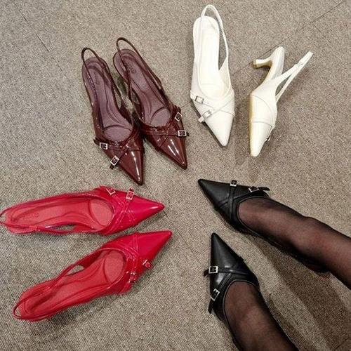 [셀러허브_여성트랜드패션]ONM 여성 뾰족코 슬림 엑스스트랩 미들굽 샌들 오피스룩