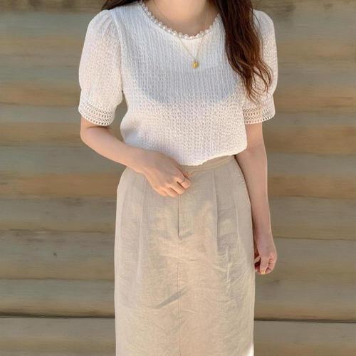 [신상오픈런]여성 러블리 볼륨 패턴 엠보싱 펀칭 반팔 티셔츠