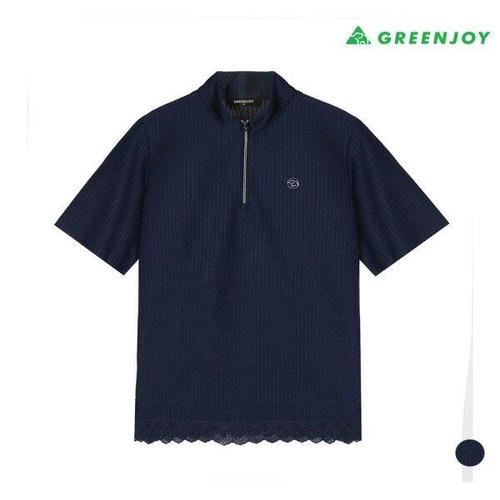 [그린조이]여성 엠보 밑단레이스 반집업 티셔츠