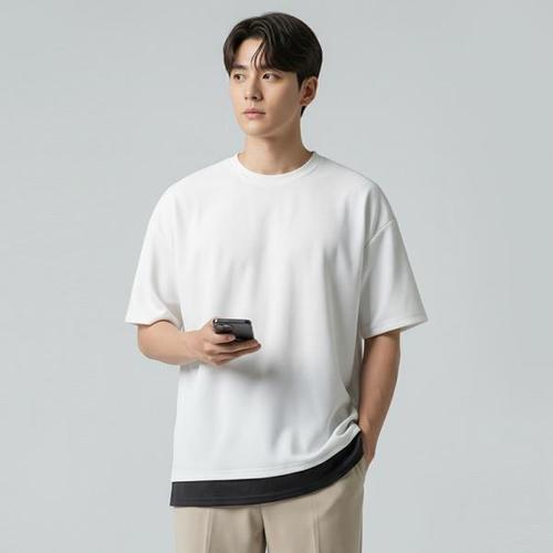 [리얼슬로우]엠보 레이어드 반팔 티셔츠 RSTS3013