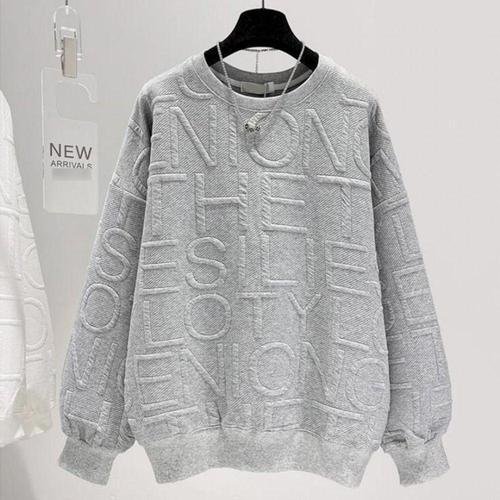 [옷자락]여자 엠보 레터링 오버핏 세미크롭 맨투맨