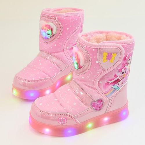 [레비스풋]하츄핑 정품 베리하트 방한 키즈 주니어 털 여아 LED 겨울부츠