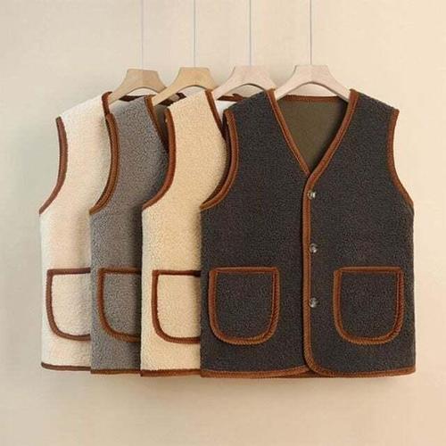 [셀럽하우스]은창)뽀글이 SGGB8689 버튼 데일리 엣지 라인 보온 포근 조끼