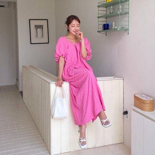 여름 캉캉 롱니트 하객 휴양지 레빈트 쉬폰 롱 WFKNXRB