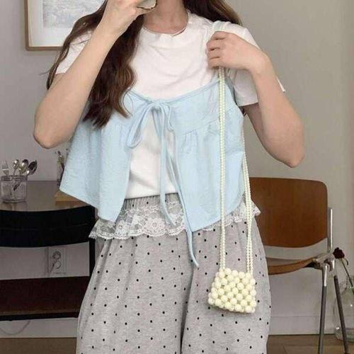 [셀러허브_여성트랜드패션]Rly 카라 크롭 여성 반팔 얇은 여름 니트 아이스