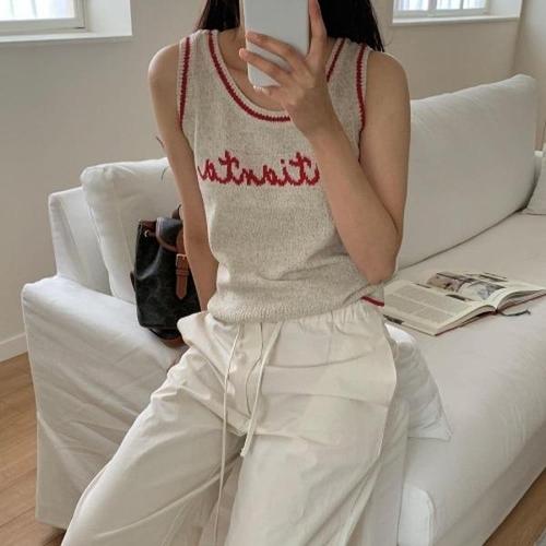 여성 여름 니트 그물 민소매 나시 조끼 캐쥬얼 바캉스
