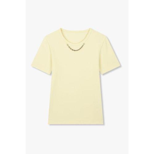 갤러리아_[25여름][가격인하]리브드 체인 숏 슬리브 티셔츠 (7115240501)