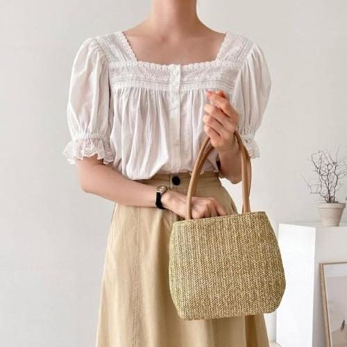 [다잇템][다잇템] 여자 썸머 클래식 벌룬 스퀘어넥 자수레이스 블라우스_18058702_588872