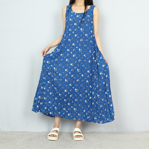 [엄지척]여름 플라워 플리츠 여성 바캉스 끈나시 롱 원피스_19911597_667501