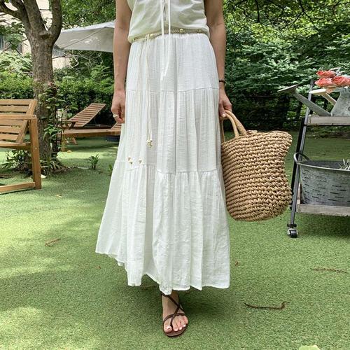 |CHK15CE|여자 썸머 린넨 핀턱 벨티드 캉캉 롱 스커트