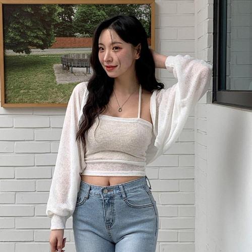 [다잇템]여자 봄 여름 시스루 볼레로 부클 끈나시 세트