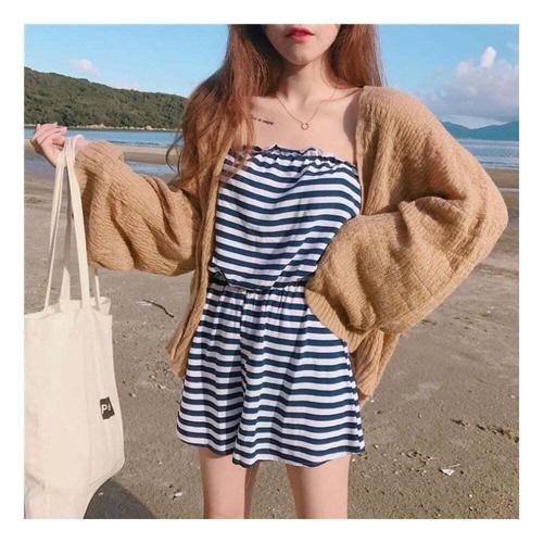 스트라이프 봄여름 여성용 레이어드 숄 가디건 페이크 아우터 간절기패션 레이어드가디건 코디 어깨 여자