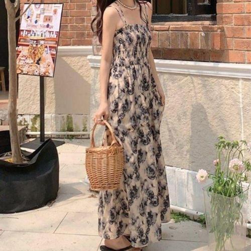 [오너클랜]인기상품 쉬폰 플라워 여름 롱 끈 원피스 휴양지 바캉스 뷔스티에 밴딩 드레스 [WFLKYBK_260304]
