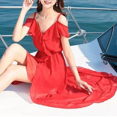 [오너클랜]인기상품 여성용 여름 쉬폰 레드 롱 원피스 비치 휴가룩 [WFLIMVW_260301]