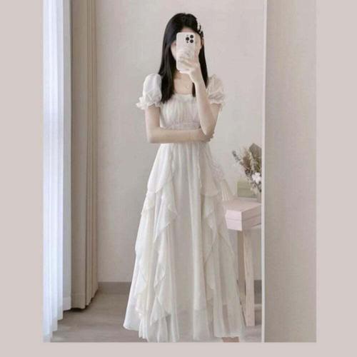 [오너클랜]인기상품 키밍 여름 화이트 쉬폰원피스 반팔 루즈핏 롱원피스 [WED8082_260304]